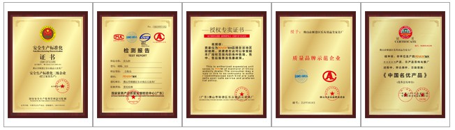 企業先后獲得榮譽:2012年4月獲得“順德區建設項目環境影響報告批準證”(環保證);擁有完善的質量檢測標準體系,2013年1月獲得中國消費者權益促進中心頒發的“中國名優產品”;擁有標準的國際管理體系,2014年1月獲得:“ISO9001:2008家具的生產和銷售”及“ISO14001:-2004家具的生產和銷售所涉及的環境管理活動”國際標準化認證;2016年4月獲得國家安全生產管理總局“安全生產標準化三級企業(輕工家具生產)”證書,同年9月獲得佛山市企業品牌促進會頒發的“質量品牌示范企業”;2019年3月,再次獲得國際質量管理體系認證:“GB/T 19001-2016/ISO9001:2015實木套房家具的生產”。