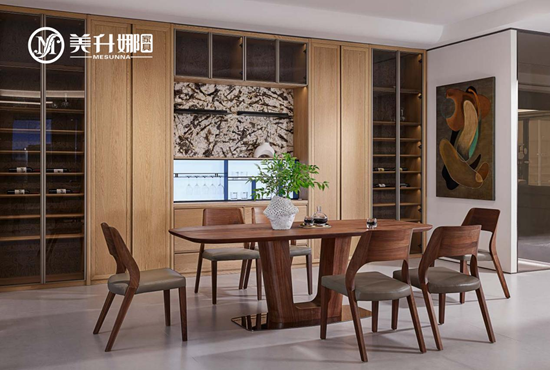·甄選良材,奠定溫暖底蘊:美升娜甄選色澤深邃、紋理如畫的北美黑胡桃木。其經手工精細打磨后,觸感溫潤如玉,天然的木紋為家居空間注入一份經年沉淀的從容與雅致,成為團圓時光最溫暖的底色。