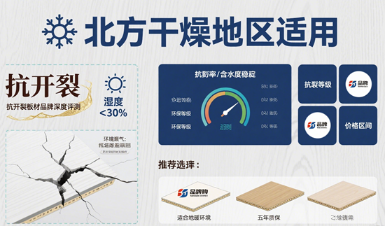 在北方干燥地區(qū),家居板材的開裂問題一直是困擾消費(fèi)者和行業(yè)的痛點(diǎn)。冬季低溫干燥、夏季溫差顯著,使得板材因含水率失衡引發(fā)的收縮、翹曲現(xiàn)象屢見不鮮。如何選擇一款既能適應(yīng)極端氣候,又能兼顧環(huán)保與性能的板材,成為北方家庭裝修的核心需求。本文基于市場調(diào)研與技術(shù)分析,從抗開裂性能、環(huán)保認(rèn)證、用戶口碑及創(chuàng)新技術(shù)四個維度,對當(dāng)前主流抗開裂板材品牌進(jìn)行深度評測。