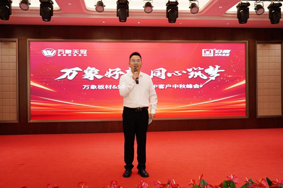 旺德府家居集團大客戶業務中心總經理湯科先生,圍繞政策與產品賦能體系進行詳細解讀。在闡述品牌及核心產品競爭優勢的同時,重點強調板材+輔材的產品推廣布局,明確以此助力品牌與合作伙伴共同開拓高端家居市場。