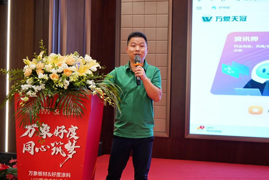 開場環節,由旺德府家居集團聯席總裁助理毛寧先生拉開本次盛會的帷幕。他向在場各位貴賓致以問候,并介紹了共同出席此次峰會的旺德府家居集團高層、好度涂料集團領導,讓現場嘉賓感受到集團對本次VIP峰會的重視與對行業伙伴的誠意。