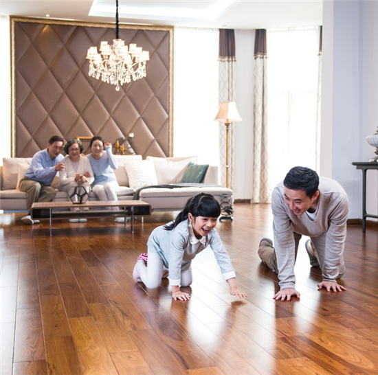 安信純實木地暖地板,選用這些穩定性極好的珍貴原木,只需通過物理切割加工,地板是一整塊原木,沒有內部分層,沒有粘合劑,不用擔心高溫在連續供暖環境中造成甲醛釋放。在技術方面,安信純實木地暖地板采用真空六面密封油,有效緩解地熱和高濕度環境中水分對地板的侵入,使地板更難變形。