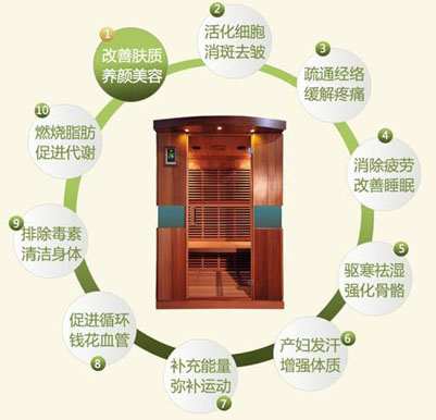 通過遠紅外線的深層照射,可加快人體的血液循環(huán),刺激汗腺出汗,有效排出體內(nèi)重金屬和毒素,消除身體里有可能導(dǎo)致癌變的有害物質(zhì)。