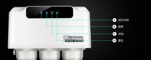 美的凈水器mro102-5面板鑲嵌了智能按鍵以及顯示功能,我們只需輕輕一按即可起動凈水器的保養功能。現在很多款凈水器都在仿效美的凈水器mro102-5進行一鍵保養設計。