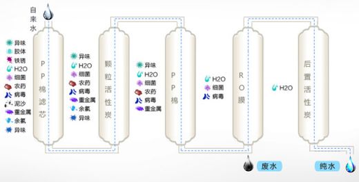2、美的MRO102-5凈水器采用韓國清湖T型漸進式PP棉,孔徑2-10um。粉塵熔噴加工,外松內緊逐層過濾;其它品牌采用普通PP棉,孔徑>10um,熔噴加工內外一致,表面易污堵。