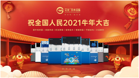 沐浴著春日溫暖的陽光,辛丑年的新春如約而至。在這辭舊迎新的重要時刻,廣東順德愛隆節能設備有限公司全體同仁,向一直支持與關注艾龍牌飲水設備的各位經銷商、合作伙伴以及廣大消費者朋友們,致以崇高的敬意及深切的問候!