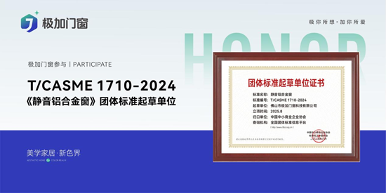 作為《靜音鋁合金窗》團體標準的核心參與單位,極加門窗自標準制定初期便深度介入。依托十余年鋁合金門窗研發與生產經驗,企業將生產實踐中的技術積累轉化為標準條款的科學依據。從型材抗風壓性能的量化閾值設定,到密封膠條耐候性的實驗室驗證方法優化,再到整窗隔音分貝的實測標準完善,極加門窗為標準條款的科學性、實用性提供了大量寶貴建議。設計周現場,企業被正式授予“標準主編單位”牌匾,這一榮譽不僅是對其技術實力的權威認可,更標志著極加門窗在全國行業標準制定中擁有了“話語權”,成為推動行業規范化發展的核心力量。
