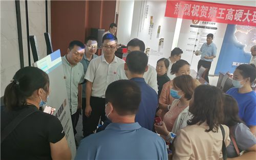 圖為獅王瓷磚廣大經銷商爭相品鑒