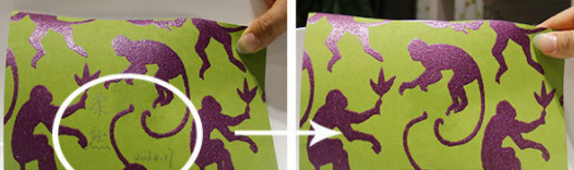 由于沒有找到油性筆,小編就用鉛筆在壁紙上涂寫,靜置兩分鐘,再用橡皮擦擦除,基本上沒有留下什么筆記。但平時還是要多注意保護(hù),尤其是小猴子的部位,如果有污漬,擦拭容易損壞砂巖,小猴子們就不“猴賽雷”了!
