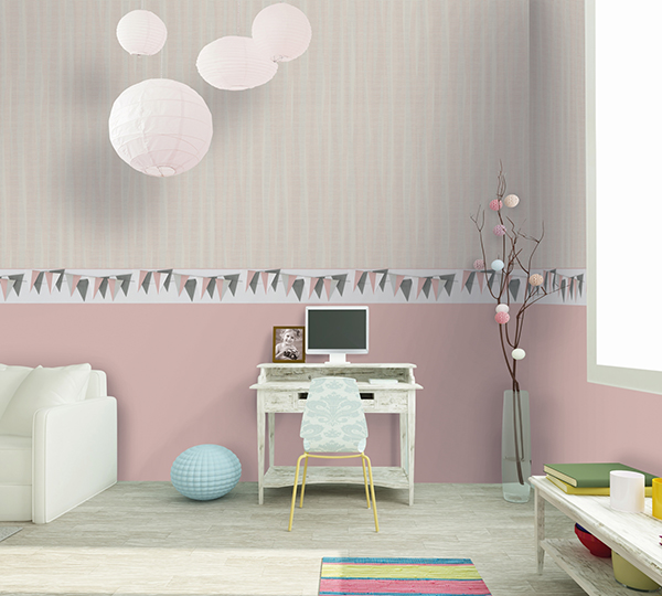 此次展會,豆蔻這一主題中,德國瑪堡壁紙將亮相《童話樂園》系列。《童話樂園》系列不僅適合兒童,對于追求個性活潑空間的大人們也很合適。因?yàn)樗粌H有各種卡通風(fēng)格的腰線壁紙,還包含了廣泛的素色款式,其中的粉色款式就十分契合“豆蔻”主題的色調(diào)。