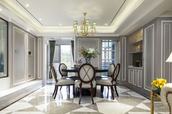 節奏快的生活,往往只有到晚間才能和家人安靜享用用餐時光。餐廳的裝扮也會影響就餐的情緒,這是挑選地中海風格的愛覺藝術涂料品牌墻面裝修,采用靈動活潑的藍色和白色,再搭配同一色系的餐椅,就能夠輕而易舉轉變空間的心情。