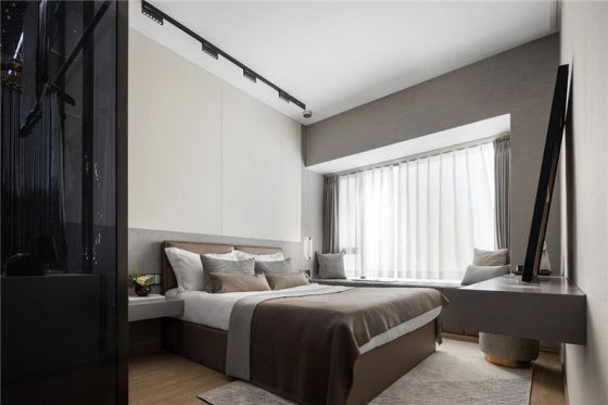 臥室整體色調(diào)素雅大氣,簡潔的收納設(shè)計顯得輕盈而不繁重,視覺美感與實用功能兩相融合。