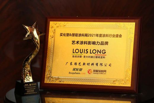 作為涂料領域的頂級行業盛事,這既是一場行業思想匯聚的盛宴,也是優秀品牌展現影響力的舞臺。經過網絡票選、專家評定等多個評定環節,從數千家涂料企業中評選出的十二項影響力品牌大獎在行業矚目中重磅揭曉。路易詩蘭不負眾望,榮獲“2021年度藝術涂料影響力品牌”大獎!