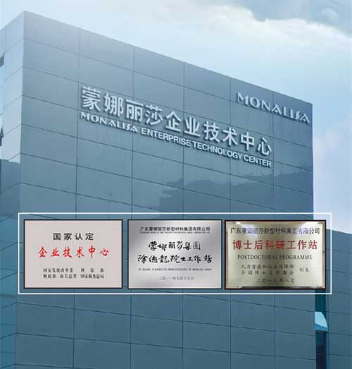 2013年,為進一步發揮企業創新優勢,引領行業薄型化的良性發展,蒙娜麗莎集團積極爭創國家級企業技術中心,以利用公司自有優勢研發和強大競爭力,為行業“薄型化”轉型發展貢獻更大力量。2013年12月,蒙娜麗莎集團技術中心經國家發改委等五部委認定為“國家認定企業技術中心”,并于2014年1月正式掛牌成立,成為全球領先的建陶產業基地(佛山)的陶瓷行業的國家級企業技術中心。同時,蒙娜麗莎也是中國建陶行業同時擁有企業博士后科研工作站、省級院士工作站、國家認定企業技術中心三大科研技術平臺的企業。