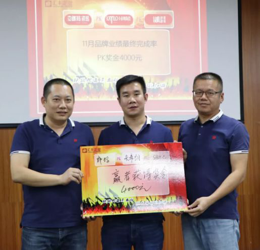 沒(méi)有競(jìng)爭(zhēng)就沒(méi)有進(jìn)步,為了在2019年最后兩個(gè)月實(shí)現(xiàn)“超越自我”再創(chuàng)佳績(jī),我們舉行了莊嚴(yán)的誓師儀式,并且制定了團(tuán)隊(duì)PK獎(jiǎng)罰制度與個(gè)人業(yè)績(jī)獎(jiǎng)罰制度,品牌總經(jīng)理代表各自品牌在“軍令狀”上簽字以表必勝之決心,勝者將獲得公司頒發(fā)的現(xiàn)金大獎(jiǎng),負(fù)者將要按照PK規(guī)則接受相應(yīng)的懲罰。