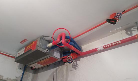 那為何冷凝水處會有一個向上的彎頭呢?那樣水不是流不出來了嗎?其實這里面有個冷凝水提高水泵,當室內的冷凝水管過長,并且坡度較小的時候,非常容易回流而出現情況。這個彎管能夠阻攔冷凝水的回流,而針對前端的冷凝水,是利用泵來抽取出來,送到彎頭的后端。這對于室內冷凝水管排布太長,或是較低層高的狀況,能夠利用這類方法來處理。