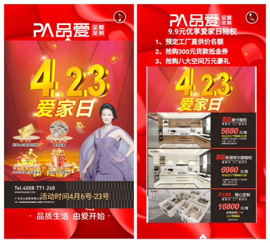 同時(shí),四月也是品愛全屋定制的“愛家月”。品愛全屋定制將每年的4月23日作為“愛家日”,旨在呼吁更多的人關(guān)懷家庭并反思自己的愛家方式。最近,品愛全屋定制就發(fā)布了“愛家日”系列優(yōu)惠政策,讓更多人能直接參與其中。