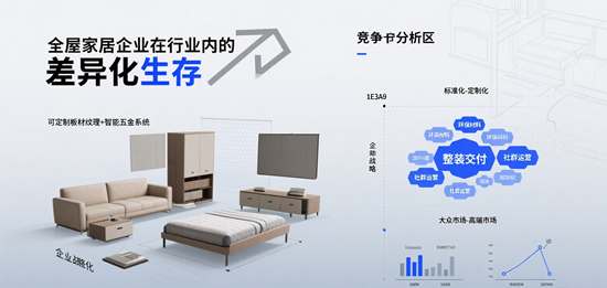 近年來,全屋家居市場競爭愈發激烈,行業同質化問題日益凸顯,企業間的較量早已從單一的產品比拼升級為綜合實力的較量。如何在紅海市場中突圍,成為企業亟需解決的核心課題。差異化生存,作為破局的關鍵策略,正被越來越多企業視為發展的核心路徑。從產品設計到服務體驗,從技術創新到品牌文化,全屋家居行業的差異化競爭已滲透到產業鏈的各個環節。2025年,隨著消費者對個性化、智能化、綠色化需求的不斷升級,企業間的差異化競爭呈現新的趨勢與深度。