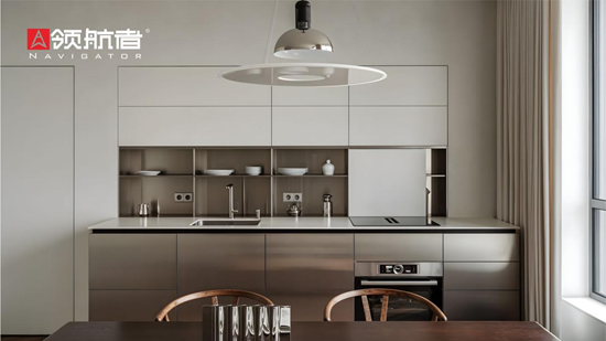 北歐風(fēng)的“極簡”藏在領(lǐng)航者廚房定制柜的功能里,廚房一體化柜體外側(cè)平整,內(nèi)里卻藏“收納魔法”——封閉柜可存放換季或不常用的廚房雜物,讓空間遠離雜亂;開放格用來放置常用餐具,拿取格外順手;高柜的設(shè)計則方便取用深處物品,每一處空間都能被高效利用,真正做到功能“藏而不露”,令廚房既有著簡約大氣的視覺效果,又能充分滿足實用的收納與操作需求。