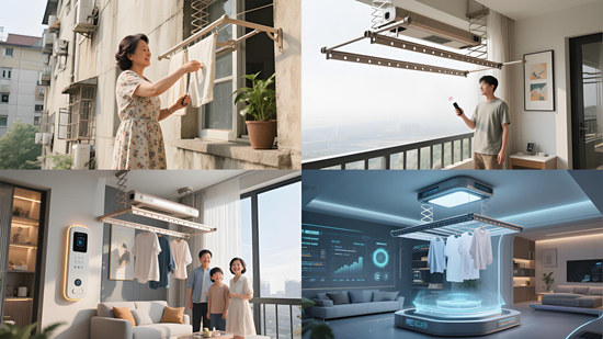 20世紀90年代中后期,隨著現代五金工藝的應用,晾衣架行業正式起步。早期的落地式、外飄式和手搖式產品解決了衣物晾曬的基本需求,但功能單一、操作不便的問題始終存在。進入21世紀,電動晾衣架的出現成為行業首個技術拐點——通過電力驅動實現升降自動化,并逐步集成照明、消毒等附加功能。然而,真正的變革發生在智能化浪潮席卷家居領域后。