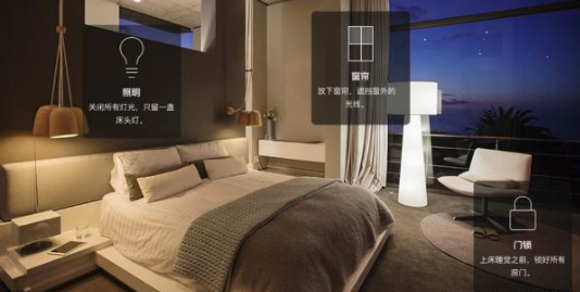 通過在全宅安裝感應器、溫濕度傳感器、語音識別等各類不同的傳感器,自動感應家居周圍的環境狀態,并做出相應的調節(例如:自動打開新風、空調、窗簾等)。