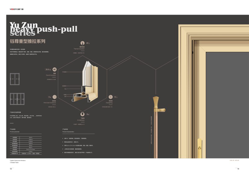 鈺尊重型推拉門超寬超厚的扇面型材給人以渾厚大氣之感,2.0毫米的壁厚加上型材獨特的形狀設計,讓型材剛度和強度提高,鈺尊重型推拉門可承載大面積玻璃,承受高的風壓。