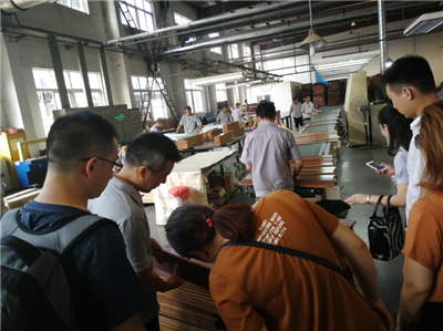 各位經銷商近距離觀閱了地板等木制產品從生產加工到制成裝箱的整個過程,并親眼見證了產品生產過程中有關質量的嚴苛檢查流程,以及精益求精的生產技術和高度智能的生產環節。在全程參觀后,經銷商們都表示出極大的信心,也收獲了許多寶貴的一線地板生產經驗。