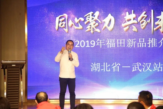 武漢福天發總經理段總致詞,回首30年滿懷感言,面對未來更充滿期待。隨后,湖北大區經理戴志平對福田電器2019年新產品做推介講解。