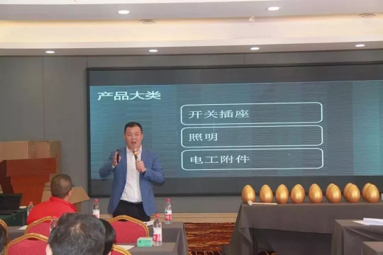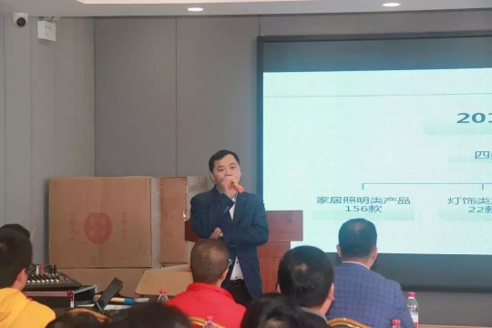福田電器照明事業部經理蔣春林和銷售部經理李金武分別針對2019年春季福田電器的照明新品和電工新品做了推介分享。