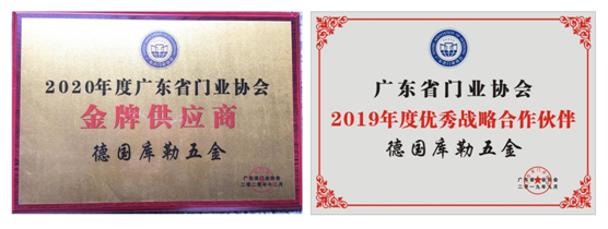 為表感恩和激勵企業(yè)對促進行業(yè)發(fā)展所作出的重要貢獻,會上舉辦了隆重的頒獎典禮儀式,2020年各項獲獎榜單相繼揭曉。庫勒五金被榮耀授予了2020年度廣東省門業(yè)協(xié)會“金牌供應(yīng)商”獎牌。據(jù)了解,在去年的協(xié)會盛典上,庫勒五金曾獲得“2019年度優(yōu)秀戰(zhàn)略合作伙伴”稱號。行業(yè)佳譽的持續(xù)加持,彰顯了其一路的實力壯大與奮斗不懈。