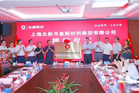 北新建材董事長王兵、北新月皇董事長程雪峰共同為“上海北新月皇新材料集團有限公司”揭牌