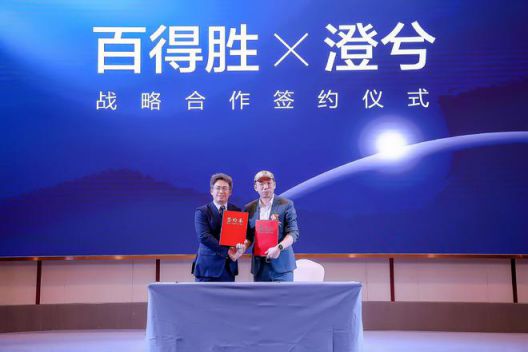 發布會現場,百得勝與澄兮科技戰略合作簽約儀式,在大家的共同見證下——百得勝與澄兮科技強強聯合,攜手合作,開啟健康家。