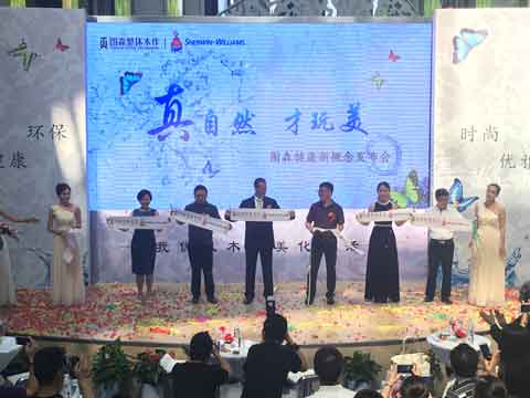宣偉亞太區(qū)工業(yè)涂料事業(yè)部市場總監(jiān)王海滴介紹說,水性漆在生產工藝層面,肯定是環(huán)保的。用在家庭中,水性漆首先就是沒有氣味,因為水性漆基本上沒有溶劑;第二個是水性漆很自然,對木器有很天然的保護,所以兩者的結合也是一種很自然的結合。