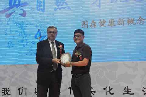 在一段關于宣偉公司的百年歷程短片之后,圖森執(zhí)行董事兼總裁王維揚先生上臺,向到場嘉賓闡述了圖森的健康新概念。他認為,圖森是打造家居空間的品牌,而對任何家居空間來說,人是最核心的因素。因此,圖森的健康新概念,首先是產品健康,所以圖森推出了比油性漆更環(huán)保的水性漆產品。其次是在色彩、視覺、功能性方面的健康,圖森和戴昆老師的合作,一直非常注重原創(chuàng)設計。他表示,在市場趨勢和國家政策的引導之下,企業(yè)不得不為了長久發(fā)展,做出選擇。