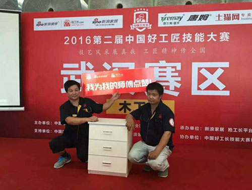 泰爾美木業集團對本次“武漢站木工組”比賽全程贊助。本次大賽所有實操成品柜所用的生態板材均由泰爾美木業集團提供,賽后所有參賽木工現場制作的成品柜均作為公益用途。
