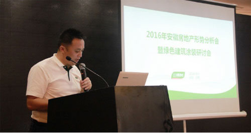 8月26日,由安徽省房地產商會與三棵樹涂料股份有限公司(以下簡稱三棵樹)共同舉辦的“2016安徽房地產行業形式分析暨綠色建筑涂裝研討會”在安徽高速開元國際大酒店隆重舉行,當地20多家地產及40余家地產供應鏈商出席了本次研討會。