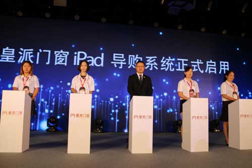 在盛會(huì)上記者看到,朱福慶董事長(zhǎng)與來自全國各地的4名金牌店長(zhǎng)代表上臺(tái),在全場(chǎng)來賓的見證下,一起啟動(dòng)了皇派iPad導(dǎo)購系統(tǒng)的發(fā)布儀式,它標(biāo)志著中國門窗行業(yè)正式邁入數(shù)字化營銷時(shí)代!據(jù)皇派相關(guān)負(fù)責(zé)人介紹,皇派門窗iPad導(dǎo)購系統(tǒng)是一款結(jié)合了全國各專賣店?duì)I銷實(shí)戰(zhàn)及消費(fèi)者選購需求的智能服務(wù)系統(tǒng),它具備內(nèi)容豐富、功能強(qiáng)大、操作簡(jiǎn)易、設(shè)置齊全的智能數(shù)字化APP軟件特征,皇派門窗iPad導(dǎo)購系統(tǒng)除了具有完整的品牌介紹、產(chǎn)品展示、廣告視頻、電子畫冊(cè)、專賣店展示、營銷活動(dòng)、新聞資訊等常規(guī)企業(yè)營銷官網(wǎng)功能外,還具備場(chǎng)景體驗(yàn)、360°三維展廳、小區(qū)推廣等營銷功能,該數(shù)字系統(tǒng)將成為未來皇派終端店長(zhǎng)們服務(wù)消費(fèi)者服務(wù)合作伙伴的“拿手武器”。