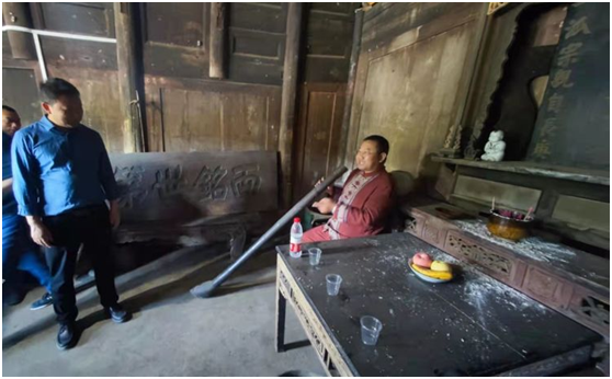 來鳳縣五道水生態旅游發展有限公司董事長余向強為縣長張作明同志展示土司煙桿