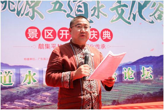 草長(zhǎng)鶯飛,鼓聲振奮。在眾人的掌聲下,五道水文旅發(fā)展有限公司總投資人、廣東弦商文化傳播有限公司董事長(zhǎng)余向強(qiáng)先生應(yīng)邀發(fā)表致辭,為本次開園慶典的成功舉行送上真誠(chéng)的祝福。