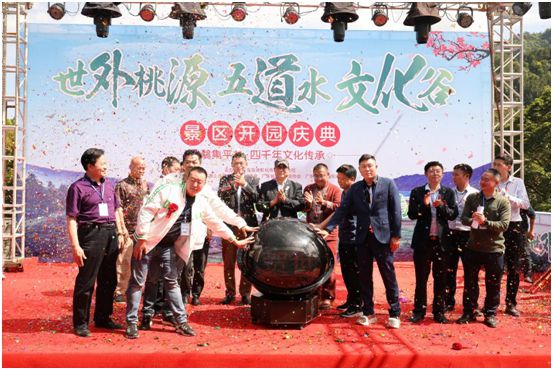 在一片熱鬧的氛圍中,各位嘉賓一同上前進(jìn)行剪彩,霎時(shí)禮炮齊鳴,人聲鼎沸。至此,世外桃源五道水文化谷景區(qū)開園慶典正式啟動(dòng)。