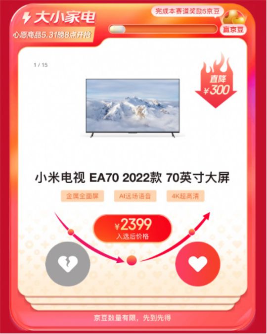 5月23日晚8點,以“618京東和你在一起”為主題的京東618全面開啟預售。今年618,京東給大家帶來了更貼心的服務、更簡單的玩法、更便捷的購物體驗。其中,京東電器推出了“電器巨超值”專區,用戶在活動專區可挑選心愿商品參與投票,投票有機會獲得京豆獎勵,涵蓋大小家電、電腦數碼、手機、配件等大牌爆款產品,各賽道前30名產品將于5月31日晚8點上線開賣,專區內的產品不用計算優惠,直接一口價。除此之外,京東電器還聯合家電、電腦數碼、手機三大品類推出了30天價保、180天只換不修等服務保障,讓大家在這個618都可輕松煥新美好生活。一起來看看有哪些家電、電腦數碼、手機、配件好物吧。