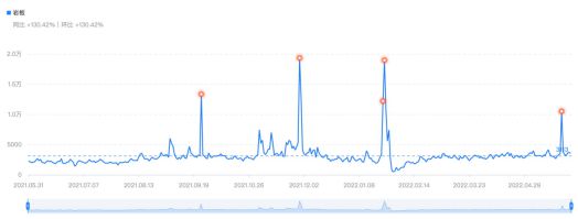 抖音平臺“巖板”搜索量數(shù)據(jù)波段,由巨量數(shù)據(jù)提供
