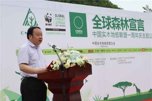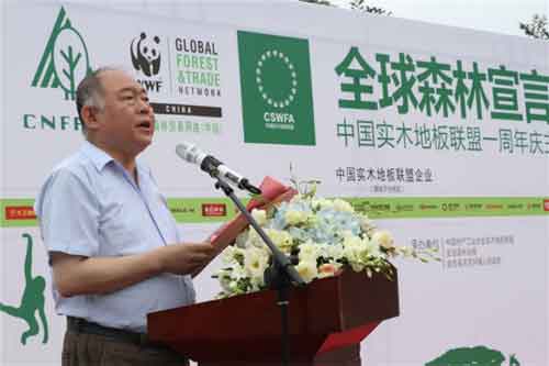 ??國家林業(yè)局原常務(wù)副部長劉廣運(yùn)、WWF世界自然基金會森林項目總監(jiān)金鐘浩、安吉縣人民政府副縣長任烽、中國實木地板聯(lián)盟主席佘學(xué)彬等領(lǐng)導(dǎo)嘉賓,出席本次活動并致辭。大衛(wèi)地板作為中國實木地板聯(lián)盟執(zhí)行主席單位積極參加了此次活動,董事長蔣衛(wèi)、市場部總監(jiān)陳樂新出席此次會儀。中國林產(chǎn)工業(yè)協(xié)會秘書長石峰擔(dān)任主持。他們從森林與人類的關(guān)系、林產(chǎn)企業(yè)木種來源認(rèn)證的合法性、如何發(fā)展綠色經(jīng)濟(jì)等方面,闡述了本次活動的重要性和積極意義。