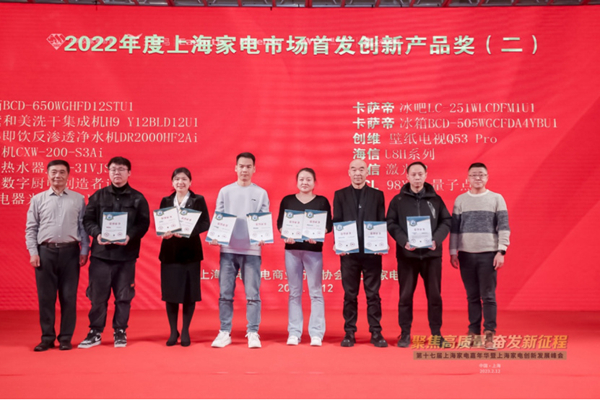 會上,經過組委會和專家評委的層層篩選,“2022年度上海家電市場首發創新產品獎”、“2022上海家電網年度卓越家電產品獎”榮耀揭曉。此外,大會還對2022年度上海家電行業優秀單位和個人進行了表彰。