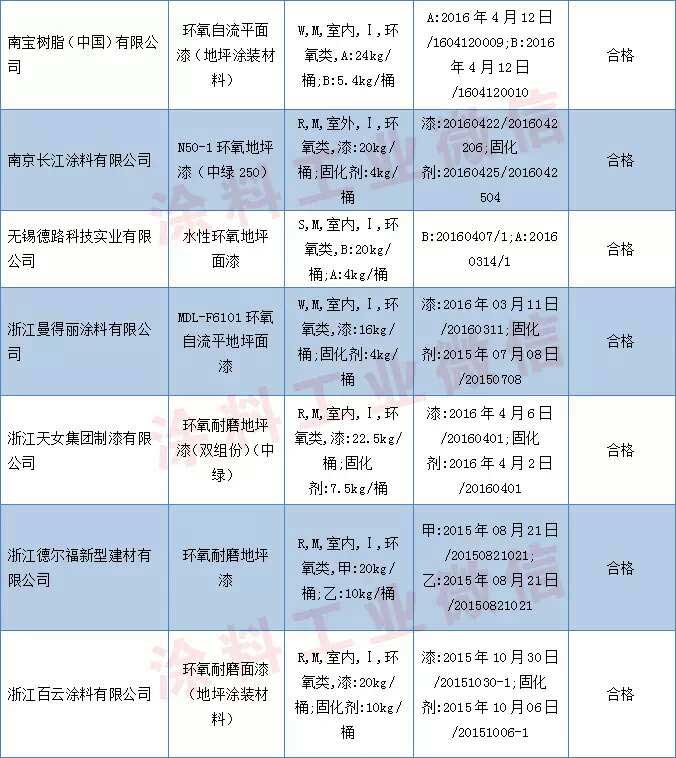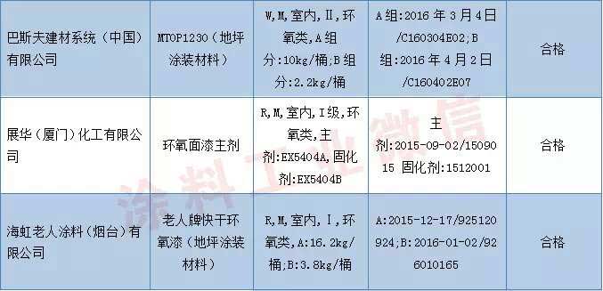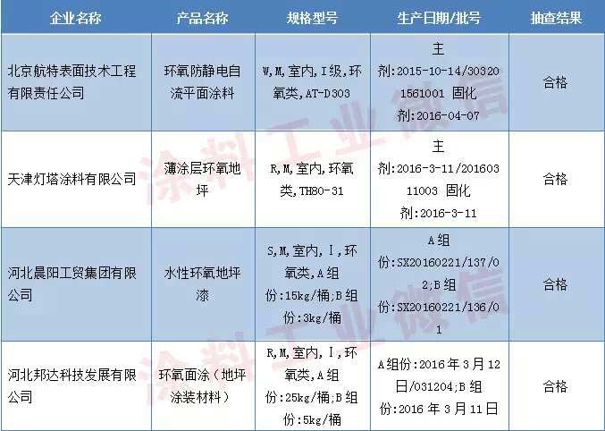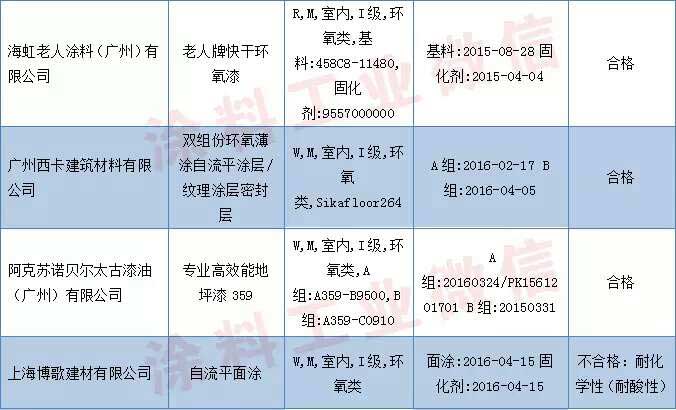 地坪涂裝材料產品抽查結果