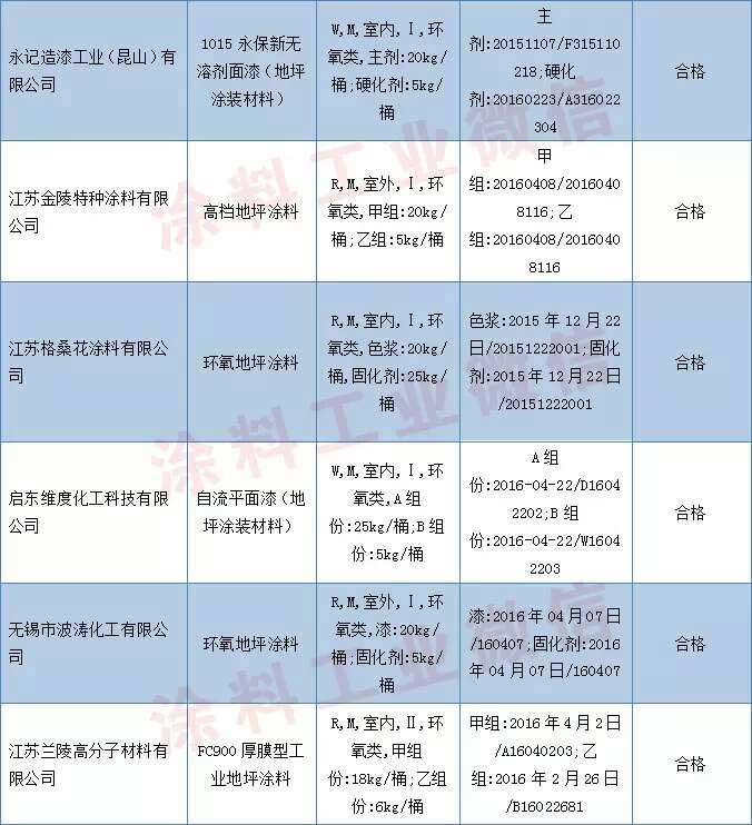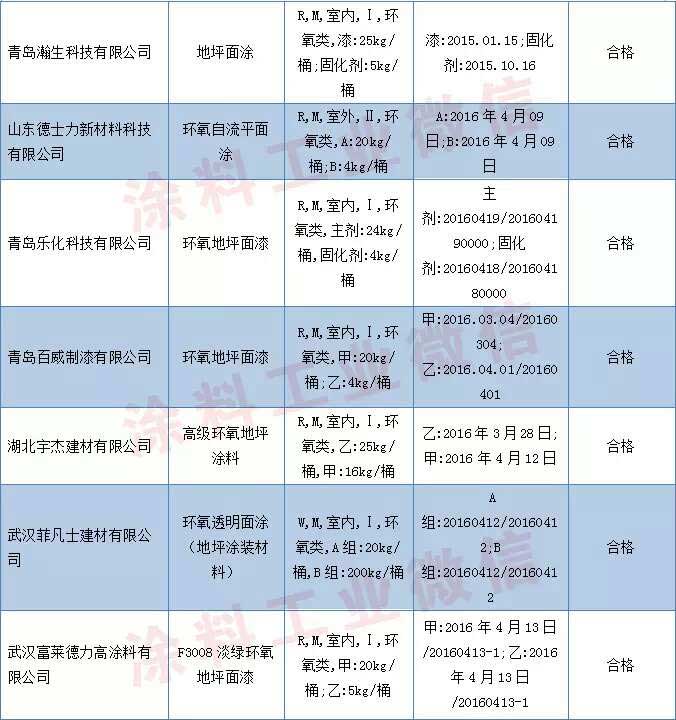 東、湖北、廣東等10個省、直轄市59家企業生產的59批次地坪涂裝材料產品。抽查依據GB/T