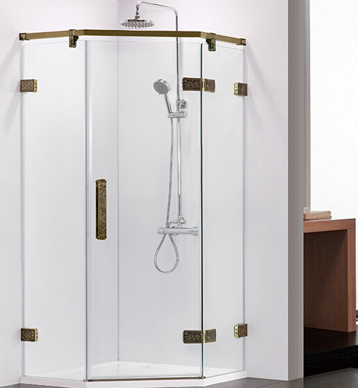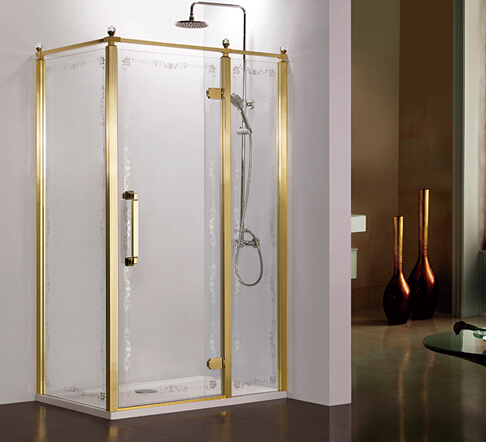 NBB系列是仿古代的代表,通過對玻璃、鋁材的特殊處理以及整體的精心設計,給人以皇室風范的奢華感覺。由古典銅與鋁材完美結合而成的拉手和合頁,手感細致而不失古典風范;頂固定管上裝飾頭鑲嵌彩色水晶,簡約別致而不失高貴典雅。現代淋浴房與華麗“土豪金”的搭配,盡顯富麗堂皇、高貴華麗的氣息。