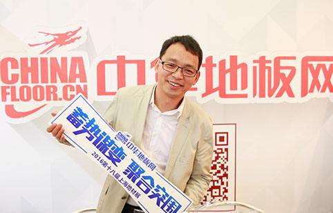 【記者】:中華地板網的網友,大家好,我現在是在第十八屆上海地材展展會的現場,今天我們很榮幸的邀請到兔寶寶地板總經理,蔡總接受我們的采訪,蔡總您好。