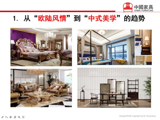 一是從“歐陸風情”到“中式美學”的趨勢。曾經的洛可可、巴洛克風格是中國中產消費階級的首選,今天新生代的年青消費群體對這種繁復、浮夸的造型已經“不感冒”了,而是回到喜歡飄逸、空靈,更有文化內涵的中式家具當中。