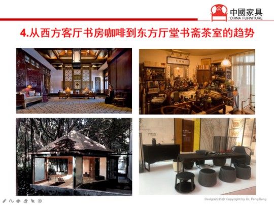 四是從西方客廳書房咖啡到東方廳堂書齋茶室的趨勢。在空間上,將從西式的電視客廳,回歸到中國式的廳堂。